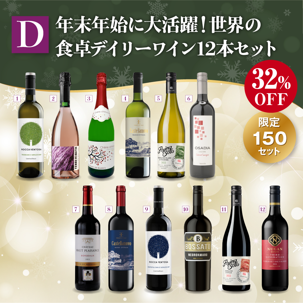 • D: 年末年始に大活躍!世界の食卓デイリーワイン12本セット