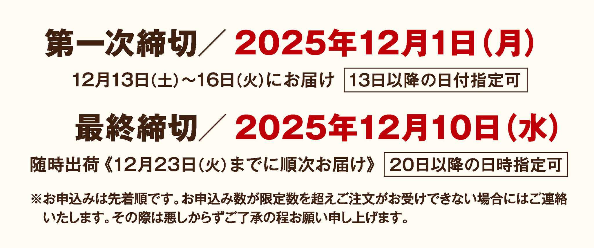 ●お届けは12月中旬から出荷開始し、12月13日~23日にお届けの予定です。